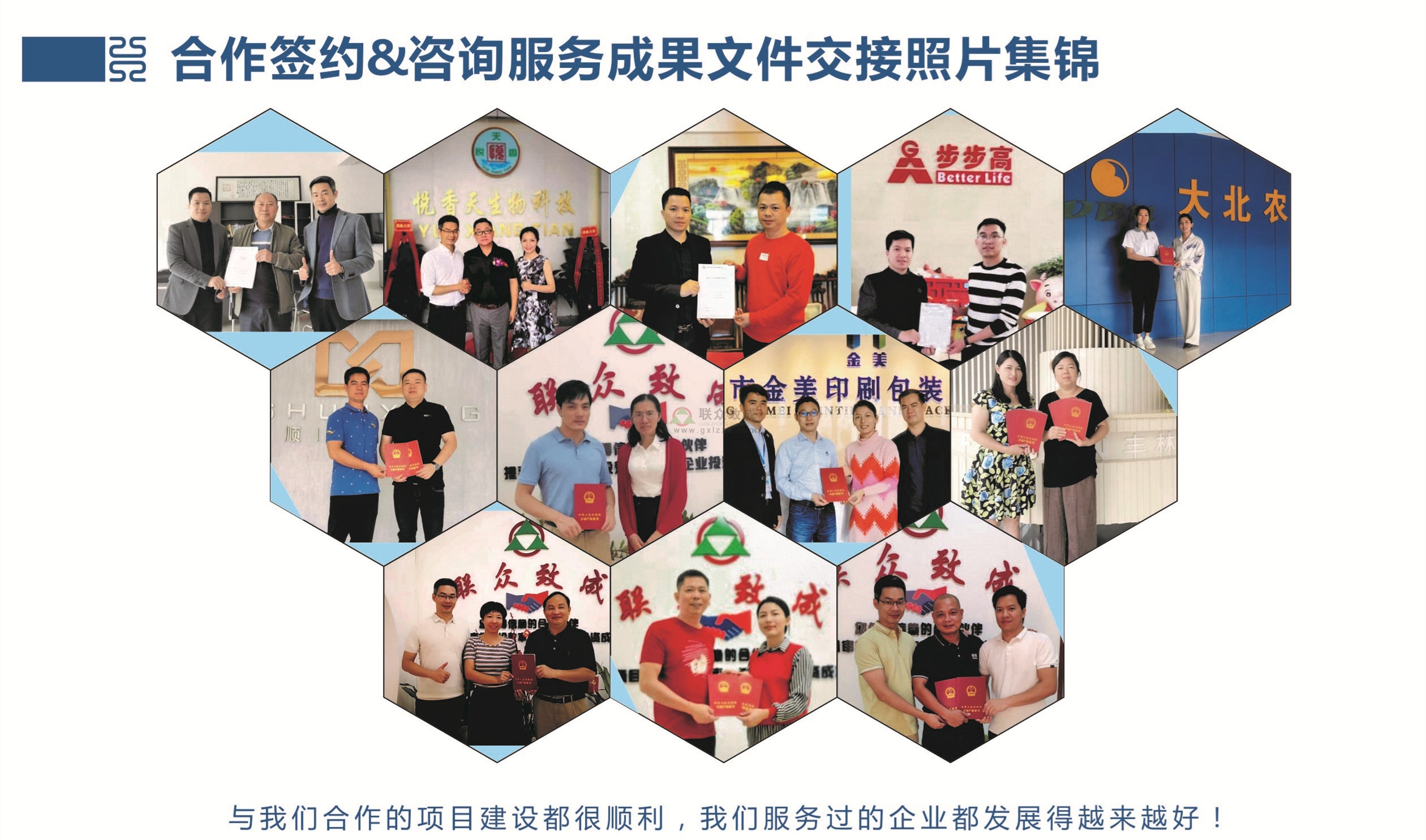 廣西聯眾致成投資咨詢有限公司成立于2014年1月,是一家專注于項目建設全過程咨詢管理的綜合性專業代理服務機構,旗下擁有4家子公司。總公司位于中國(廣西)自由貿易區CBD核心區凱旋路16號,并在國家級廣西一東盟經濟技術開發區武華大道39號青年工業園綜合樓3樓設立分公司(輻射里建東盟經開區、武鳴城區)。公司創立至今,為項目建設全過程提供“一站式”服務,通過整合資源...了解更多 >>